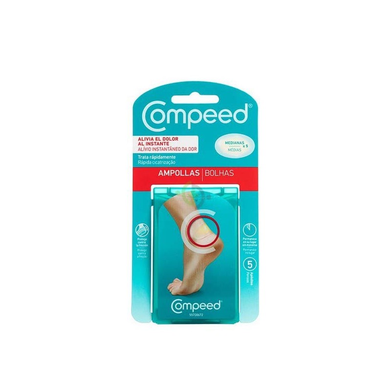 MODO DE EMPLEO : Limpiar y secar la piel antes de la aplicación asegurando que la zona esta limpia de restos de cremas y aceites. Mantener el apósito en su sitio hasta que se empiece a desprender por sí solo, puede permanecer adherido varios días. PRECAUCIONES Y ADVERTENCIAS : Los pacientes diabéticos deben consultar a su médico antes de utilizarlo. No aplicar sobre heridas infectadas. No reutilizar. Si empeora la ampolla o no se cura consultar al médico. ACCIÓN Y DESCRIPCIÓN : Protección extra contra la fricción, alivia el dolor de las ampollas. Actúa como una segunda piel manteniendo el equilibrio natural de humedad. Facilita la cicatrización. CE 0459