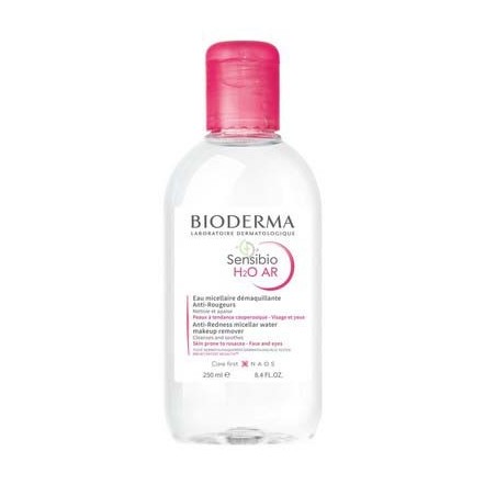BIODERMA SENSIBIO H2O AR SOLUCION MICELAR PIEL SENSIBLE 250 ML La Solución Micelar de Bioderma específica para las pieles más sensibles. Limpia y desmaquilla cara y ojos sin irritar. INDICACIONES - Con patente Rosactiv que trata desde la limpieza, alivia inmediatamente y previene la aparición de rojeces. - Sin Parabenes. - Sin perfume. Sin jabón. UTILIZACIÓN Empapar u disco de algodón y desmaquillar cara y ojos. Repetir la operación hasta que el algodón quede limpio. No requiere aclarado.