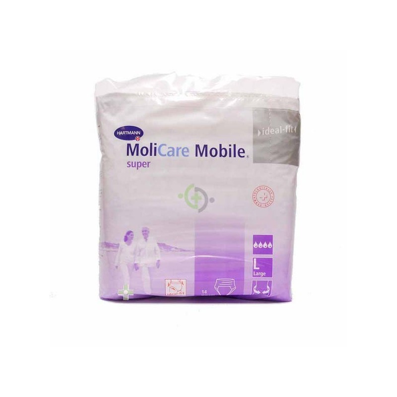 Más adaptables: Su forma anatómica asegura una fijación perfecta y discreta. No se desliza ni abulta. Protección para la piel: La capa superior aísla y aleja la orina ayudando a mantener el pH ácido del manto protector de la piel. El pH ácido tiene un efecto antibacteriano evitando posibles infecciones.Seguridad confortable: El innovador cuerpo absorbente de 3 capas asegura una protección total, alejando la orina de la piel y manteniendola agradablemente seca.Fáciles de colocar! MoliCare mobile se usa como ropa interior. Rasgando sus laterales, los pants se desechan de modo fácil y discreto.Cuerpo absorbente de tres capas que permite una absorción ultrarápida, segura y permanente de la orina, eliminando el riesgo de alteracion del pH de la piel.-Bolsa de 14 unidades- Embalaje compacto. - Peso: 500 g - - Código Nacional: 165941