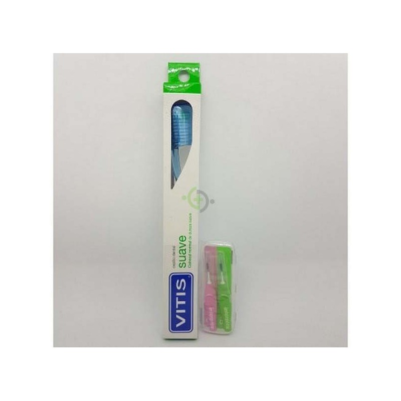 Este cepillo suave de Vitis es de uso diario. Tiene un cabezal normal con forma diamantada para llegar a las zonas de difícil acceso de la cavidad bucal.Filamentos suaves con perfil ondulado para seguir el contorno de las encías y facilitar el acceso a los espacios interproximales. Cuenta con un cuello maleable que permite su flexión hasta adquirir la posición del cepillo que mejor se adapta a la cavidad bucal, facilitando la accesibilidad durante el cepillado.