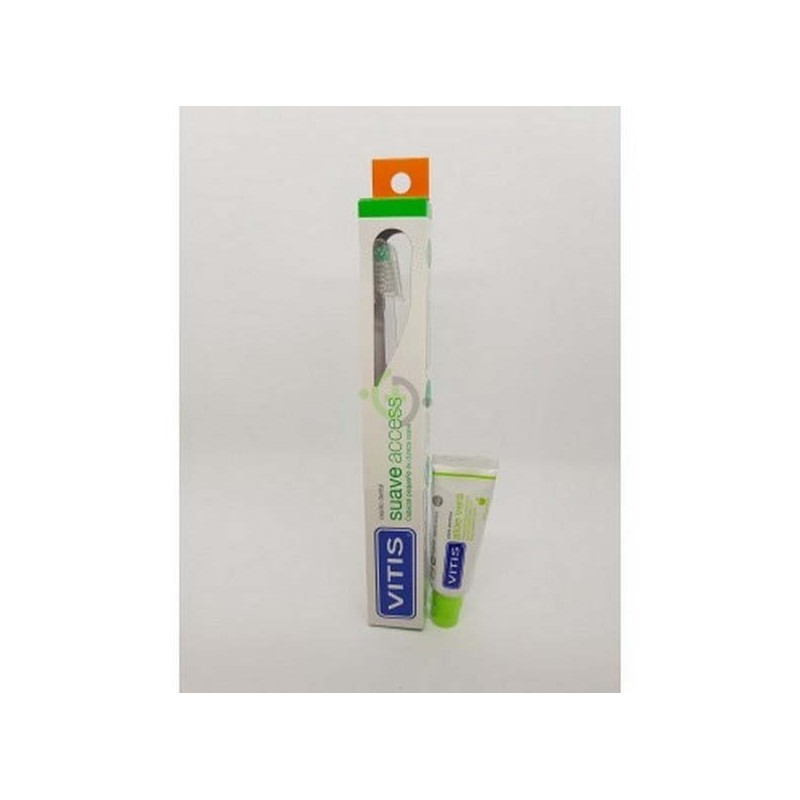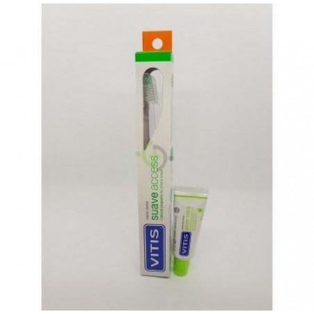 Este cepillo suave de Vitis e s de uso diario. Tiene un cabezal normal con forma diamantada para llegar a las zonas de difícil acceso de la cavidad bucal.Filamentos suaves con perfil ondulado para seguir el contorno de las encías y facilitar el acceso a los espacios interproximales. Cuenta con un cuello maleable que permite su flexión hasta adquirir la posición del cepillo que mejor se adapta a la cavidad bucal, facilitando la accesibilidad durante el cepillado.