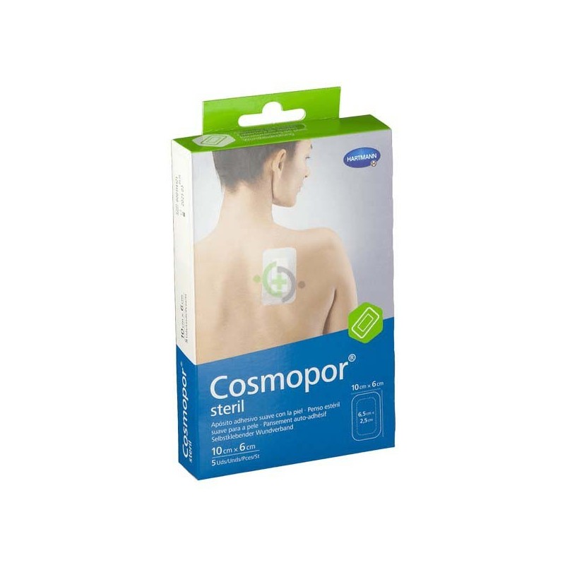 Cosmopor Steril Apósito . Apósito adhesivo estril e specíficamente recomendado para heridas post quirúrgicas y superficiales. Adhesivo dermatológicamente testado.