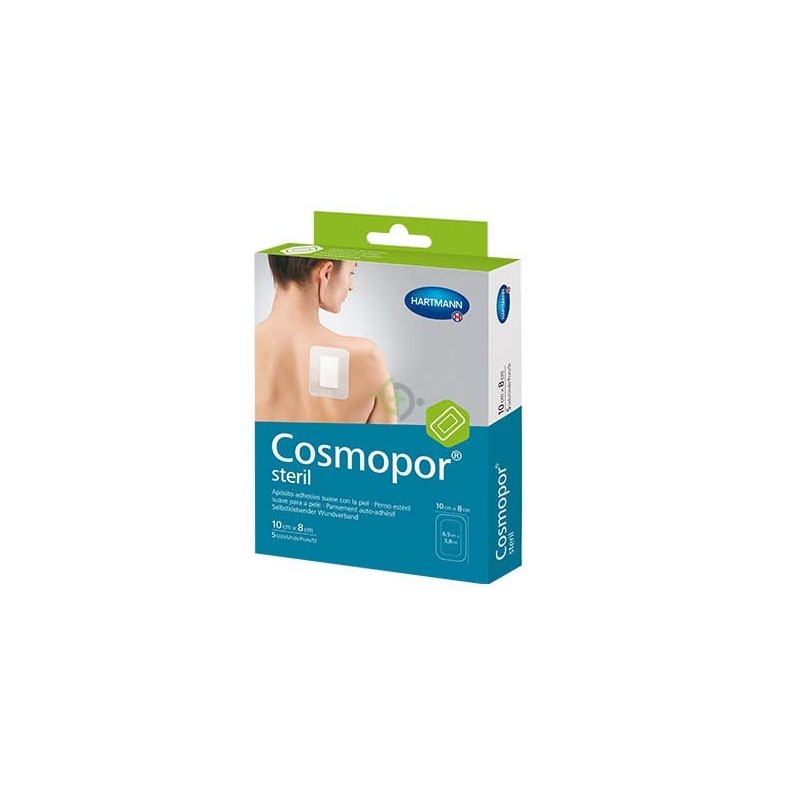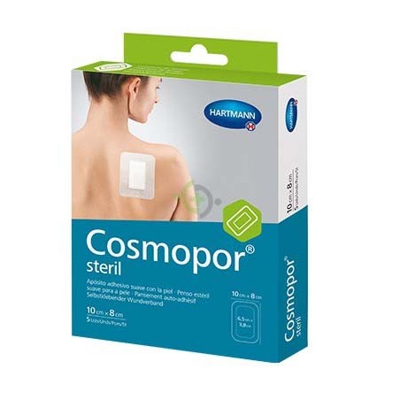 Cosmopor Steril Apósito . Apósito adhesivo estril e specíficamente recomendado para heridas post quirúrgicas y superficiales. Adhesivo dermatológicamente testado.