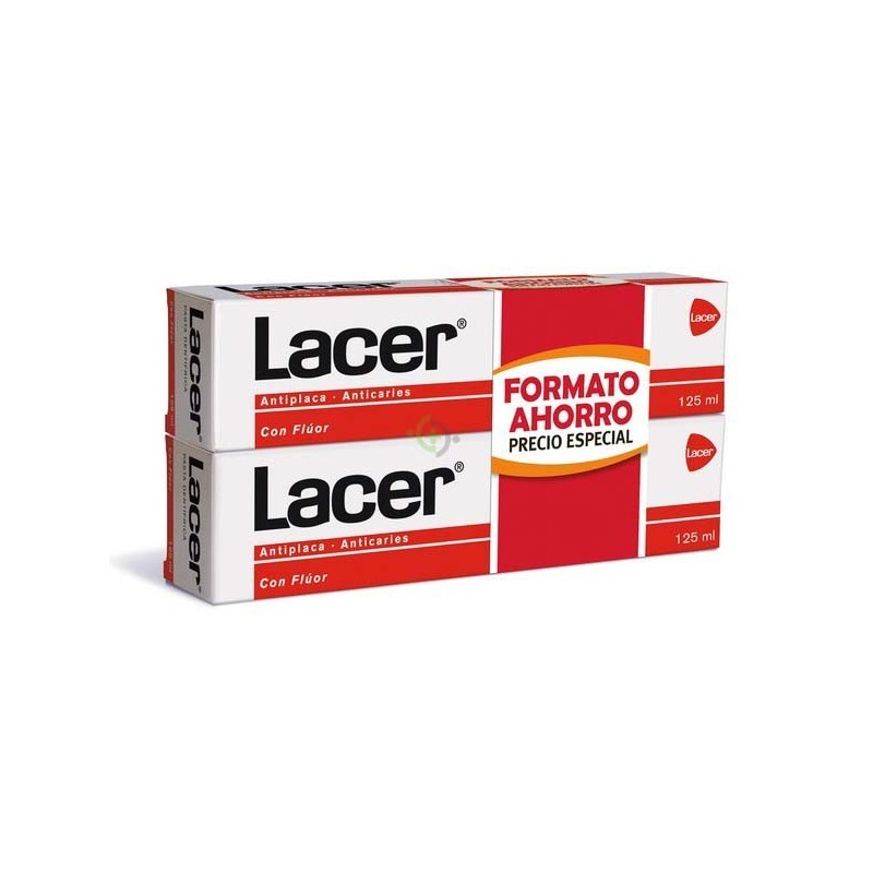 2 Pastas Dentífricas Lacer 125ml. PRECIO ESPECIAL Pasta Dentífrica Lacer de Uso diario que gracias a su completa formulación previene la caries, elimina la placa dental, limpia los dientes sin acción irritante y refuerza el esmalte y la dentina.