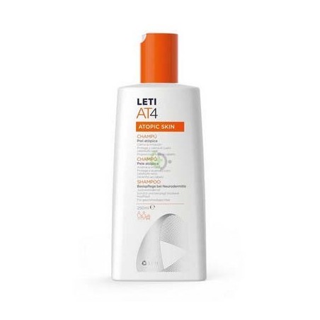 LETI AT-4 CHAMPU 250 ML. Higiene diaria del cuero cabelludo seco de la persona atópica. Contiene activos con acción emoliente, protectora y calmante. Facilita el peinado y proporciona brillo al cabello. El Champú LetiAT4, fruto de la investigación de Laboratorios LETI, protege frente a la descamación del cuero cabelludo seco mientras proporciona flexibilidad, suavidad y brillo al cabello. La utilización de productos inadecuados en la higiene y en la emoliencia son factores desencadenantes o agravantes de brotes y una de las mayores causas de persistencia de Dermatitis Atópica. LetiAT4 Champú incorpora extracto de algodón en su formulación y forma una película protectora sobre el cabello que sigue actuando incluso después del lavado dejándolo suave y brillante. La combinación de sus activos proporciona una acción emoliente, nutritiva y calmante. Indicaciones LetiAT4 es un producto específico, en casos de tendencia atópica, para la higiene, cuidado y protección del cuero cabelludo del adulto, del niño y del bebé (con o sin costra láctea).