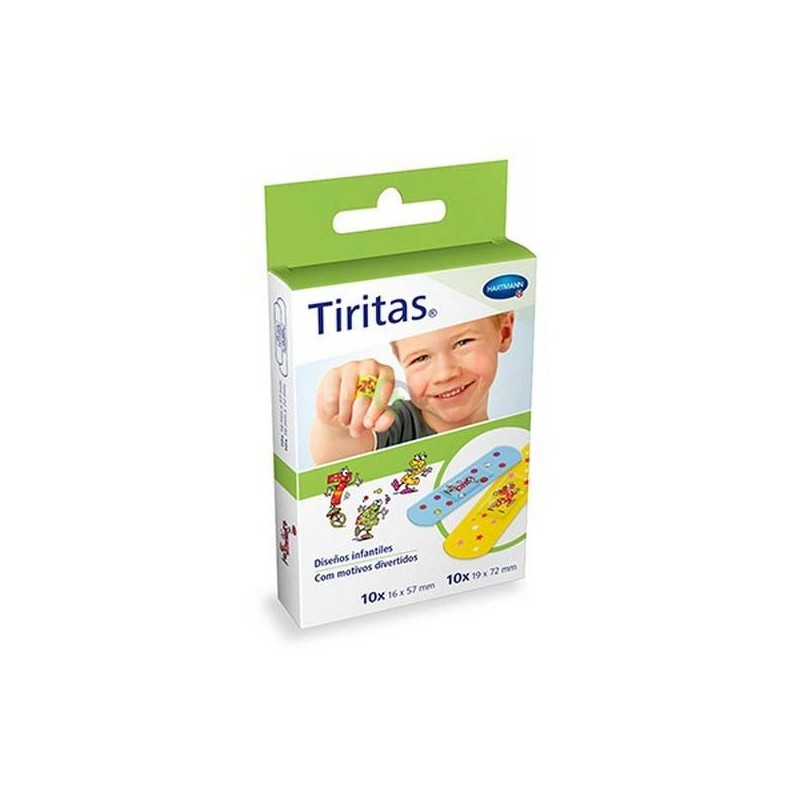 Las Tiritas Kids de Hartmann són unas tiritas infantiles hipoalergénicas, de plástico impermeable al agua y a la suciedad, con un simpático diseño para los más pequeños.No se adhieren a la herida.Resistentes alagua.Bien toleradas por la piel.20 unidades en 2 tamaños.