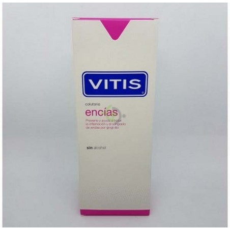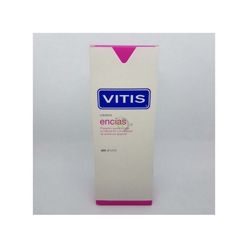El colutorio VITIS© encías es un enjuague bucal específicamente formulado para controlar la gingivitis. Su uso continuado ayuda a prevenir la inflamación y el sangrado de las encías. Adem s, inhibe la formación de biofilm oral (placa bacteriana) y reduce su acumulación en la cavidad bucal, previniendo así la aparición o el desarrollo de gingivitis.VITIS© encías colutorio no contiene gluten por lo que es apto para las personas celíacas