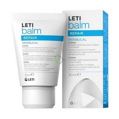 LETIBALM PERIBUCAL 30 ML. Letibalm Peribucal es el tratamiento protector y regenerador de la piel expuesta a babas y humedad continuada. Indicaciones Dentición infantil. Regurgitación láctea del bebé. Uso prolongado del chupete. Trastornos neurológicos. Ancianos. Modo de empleo Aplicar y extender suavemente sobre la piel limpia y seca, en la zona peribucal agredida (labios, contorno de boca, barbilla). La punta redondeada del tubo facilita la aplicación del producto sobre la piel. Puede ampliarse la zona de aplicación si es necesario a cuello o inicio del pecho.