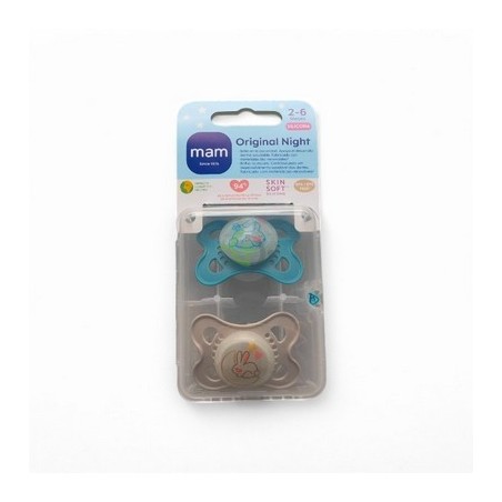 MAM CHUPETE SILICONA ORIGINAL NIGHT 2-6 MESES AZUL 2 U PACK DOBLE