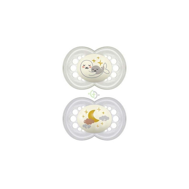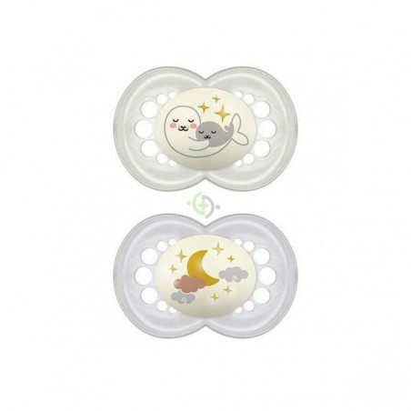 MAM CHUPETE SILICONA ORIGINAL NIGHT + 6 M PACK DOBLE GRIS
