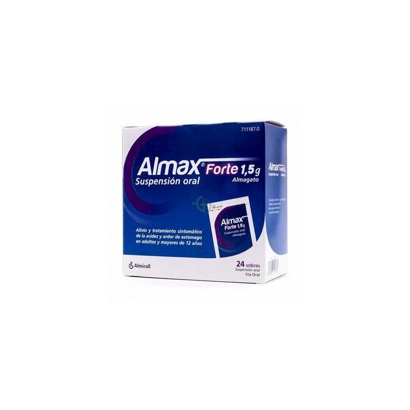 Almax Forte 1,5 g Suspensión Oral 24 sobres de Almirall, es una cura efectiva y de rápida acción, que gracias a su alto contenido en ?Almagate? actúa sobre el exceso de jugos gástricos estomacales incluso los ácido biliares, disipando la sensación de malestar. Ventajas
