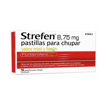 En la composición de Strefen pastillas para chupar miel y limón se encuentra el principio activo de este medicamento, el flurbiprofeno . El flurbiprofeno tiene actividad antiinflamatoria, analgésica (reduce el dolor) y antipirética (reduce la fiebre). Su acción analgésica permite aliviar los síntomas asociados al dolor de garganta.